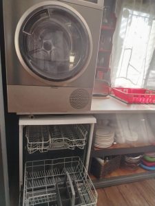 Inside, the open-plan kitchen, dining, and lounge area is designed for comfort and connection. For your convenience, the home includes a dishwasher, tumble dryer, and washing machine.
